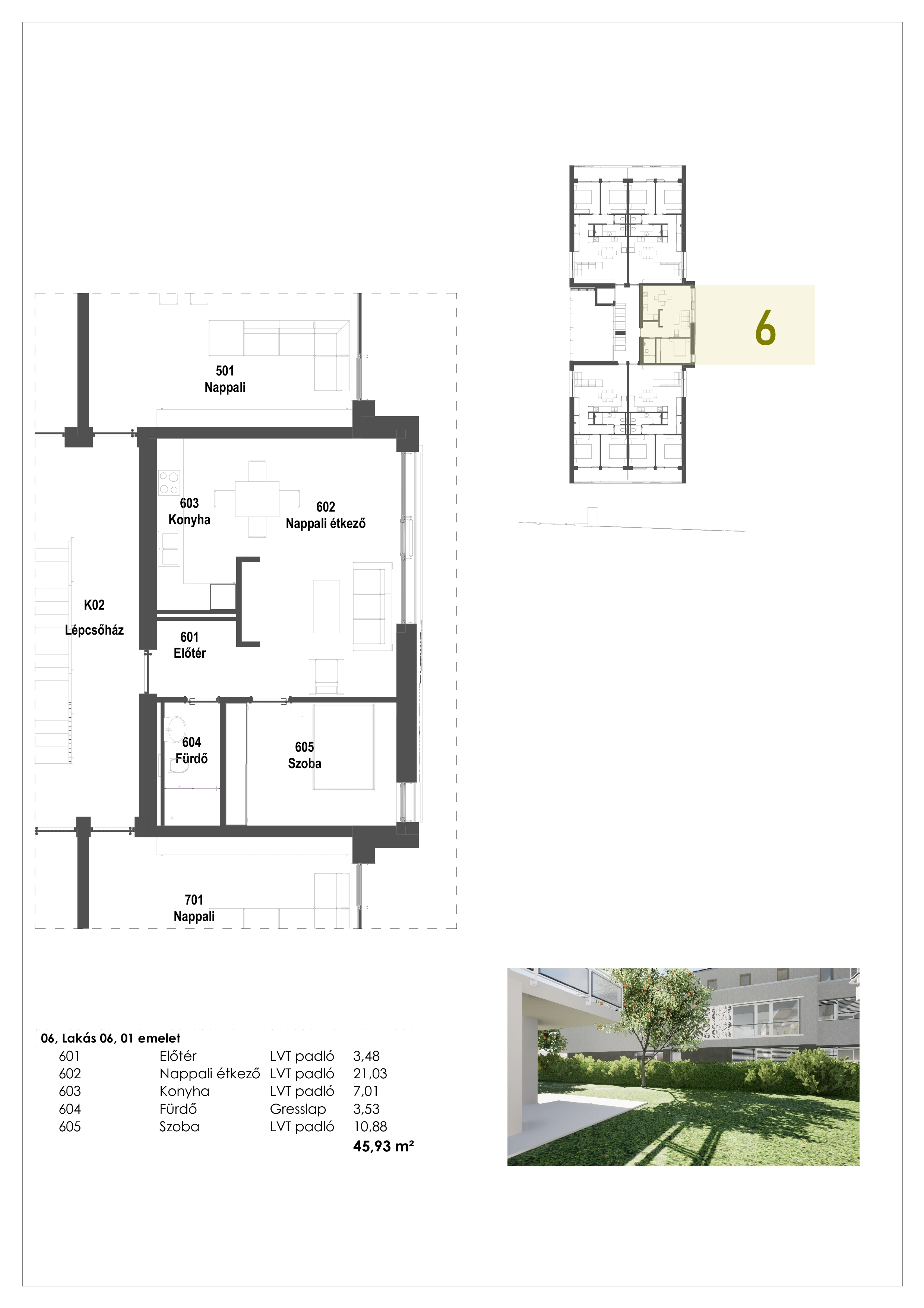 Ez a kifinomult, első emeleti egy szobás lakás tökéletes harmóniát teremt a tágas terek és a praktikus elrendezés között. A modern, egybenyitott nappali-konyha-étkező tér bőséges természetes fényt kap, amely tovább fokozza az otthon világos és barátságos atmoszféráját. A letisztult vonalvezetésű konyha elegáns kialakításával tökéletes helyszíne a közös étkezéseknek és a meghitt pillanatoknak.